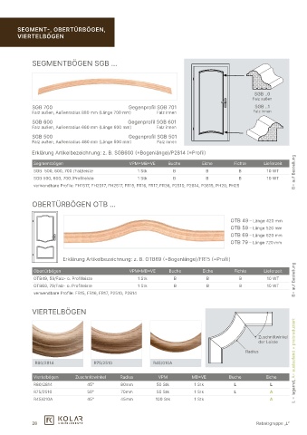 Erklärung Artikelbezeichnung: z. B. SGB600 (=Bogenlänge)/P2814 (=Profil)