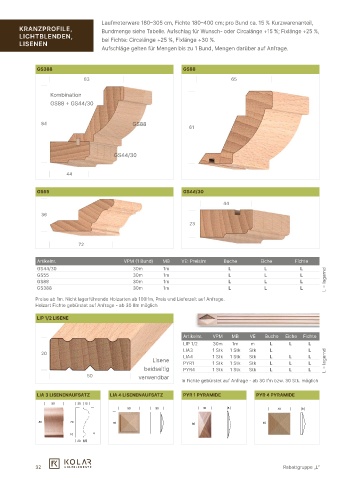 kranzprofile, Bundmenge siehe Tabelle. Aufschlag für wunsch- oder Circalänge +15 %; Fixlänge +25 %,