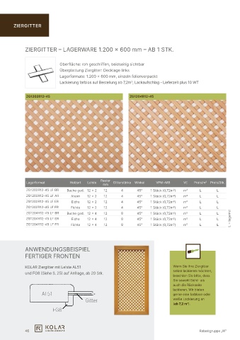 Lagerformat Holzart Leiste Gitterstärke winkel VPM=MB VE Preis/m² Preis/Stk.
