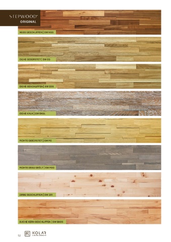 ORIGINAL NUSS GESCHLiFFEN | SW NGS EiCHE GEBüRStEt | SW EG EiCHE GESCHLiFFEN | SW EGS EiCHE kALk | SW EkGL FiCHtE GEBüRStEt | SW FG FiCHtE GRAU GEöLt | SW FGo ziRBE GESCHLiFFEN | SW ziR BUCHE kERN GESCHLiFFEN | SW BkGS 52