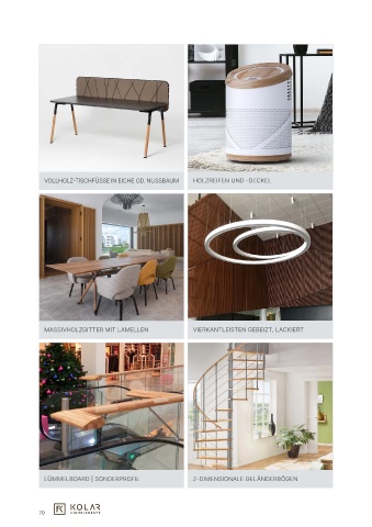 VOLLHOLZ-TiSCHFÜSSE iN EiCHE Od. NUSSBAUM HOLZREiFEN UNd -dECKEL MASSiVHOLZGiTTER MiT LAMELLEN ViERKANTLEiSTEN GEBEiZT, LACKiERT LÜMMELBOARd | SONdERPROFiL 2-diMENSiONALE GELäNdERBÖGEN 70