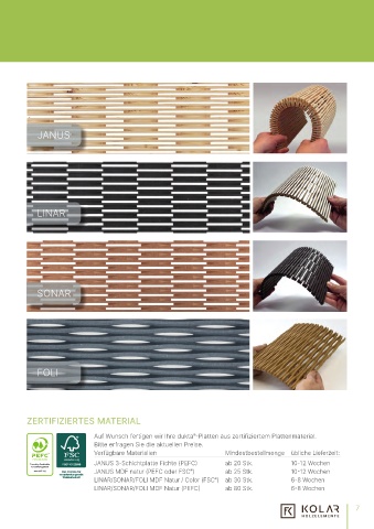 LINAR/SONAR/FOLI MDF Natur / Color (FSC ) ab 30 Stk. 68 Wochen