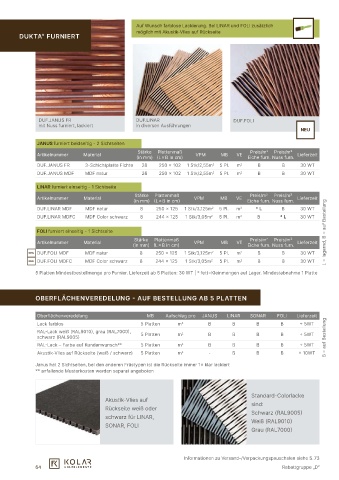 NEU dUF.FOLi MdF MdF natur 8 250 × 125 1 Stk/3,125m 2 5 Pl. m 2 B B 30 wT
